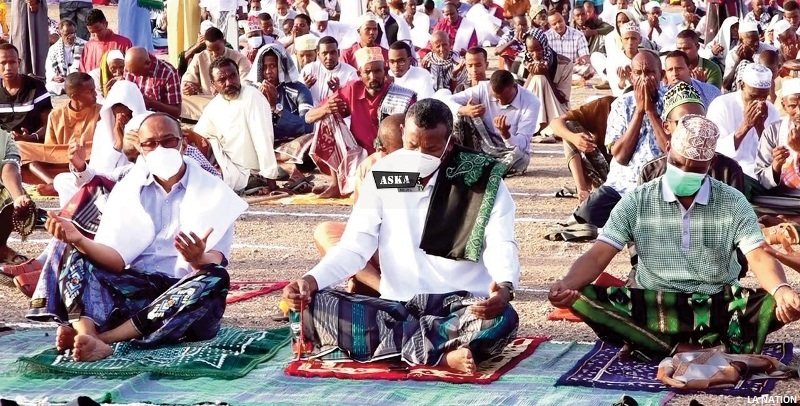 Des fidèles portant tous des masques chirurgicales ou cache-bouches, autre geste de barrière pour échapper à la contraction du COVID 19. Sur place, à la fin de la prière, les nombreux fidèles ont priés et réclamé ensemble des invocations de bénédictions à l’adresse de la divinité afin d’éviter au pays les éventuelles conséquences fâcheuses de ce virus qui malmène actuellement le monde entier. Notons la participation, du ministre de la santé, Mohamed Warsama Dirieh, originaire de la région, du préfet de la région, Moussa Aden Méraneh, du président du conseil régional, Omar Ahmed Waïs, des représentants de la région dans l’hémicycle national, des élus locaux, les responsables des différents corps en uniforme, des chefs coutumiers, des oulémas considérés et des nombreux autres anonymes à ce rassemblement qui annonce le début de la fête de l’Aïd-Fitr. A l’issue de la prière, le préfet a reçu dans sa résidence les officiels : le membre du gouvernement, les députés de l’Assemblée Nationale, les élus régionaux, les chefs de l’Armée, des forces de police et des gendarmes dans un moment de convivialité autour du célèbre plat matinal des fêtes de l’Aïd : le « Ambabour ». Un repas composé de galettes jaunies et grillés à prendre avec du lait caillé.