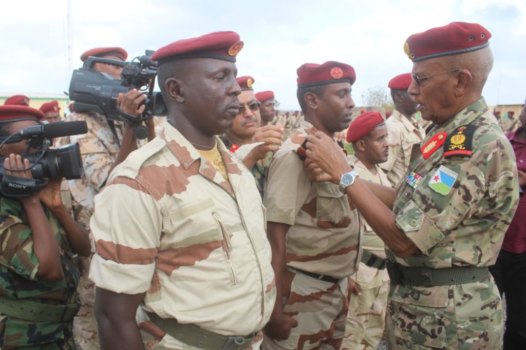 Très satisfait des résultats, le général de corps d’armée Zakaria Cheick Ibrahim a exhorté les militaires du BIR à donner davantage pour la patrie et le pays. Il a souligné que le haut commandement militaire a placé beaucoup d’espérance en eux et que le pays attend beaucoup du BIR. Le haut gradé militaire a conseillé aux jeunes soldats de garder toujours en soi la notion de dépassement de soi et du courage absolu qui ont toujours fait la renommée des forces armées djiboutiennes dans toutes les situations. Ainsi, pour leur témoigner de sa satisfaction, le chef d’état-major général des FAD a décoré les meilleurs éléments de ce bataillon pour le travail assidu et les efforts inlassables fournis. De ce fait, les plus méritants se sont vus promus au grade supérieur.