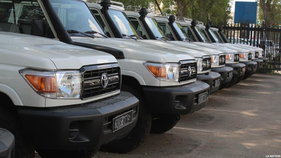 La cérémonie s'est clôturée par la remise de clés de 13 voitures dont 12 Hard Top 4/4 et 1 voiture dina aux inspecteurs de l'enseignement moyens et secondaire de la capitale et des régions de l'intérieur.