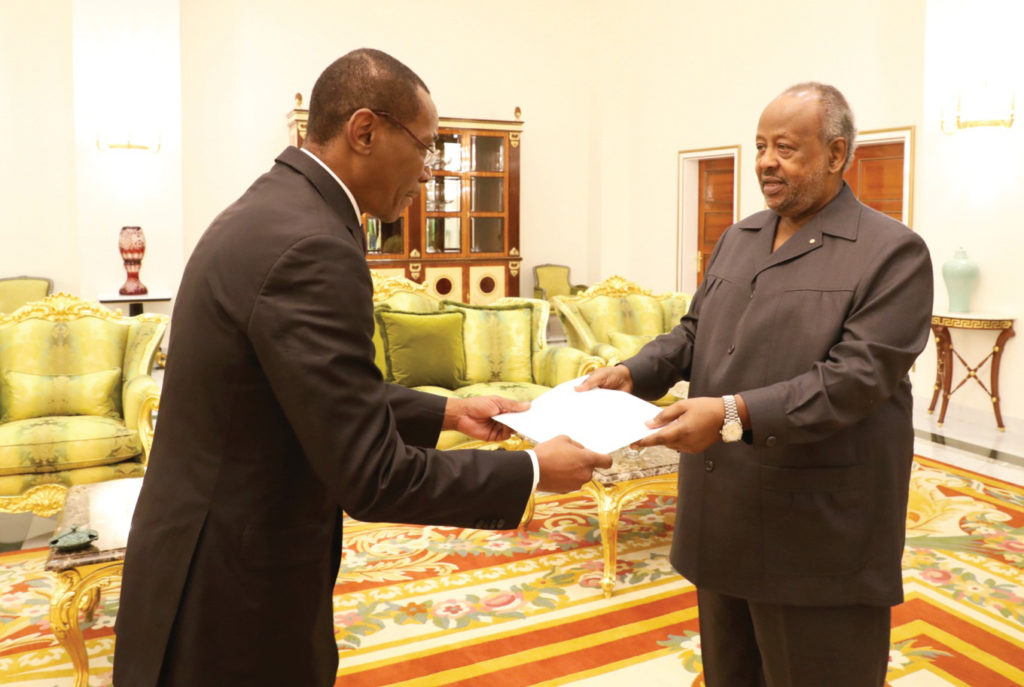 Le Président de la République, Ismaïl Omar Guelleh, a reçu les lettres de créances de cinq nouveaux ambassadeurs accrédités auprès de notre pays, hier au palais présidentiel. Il s’agit de Timothée Odjio, Sidi Ould El Gihadhy, Jacques Alfred Ndoume-Eboule, Luiz Eduardo de Aguiar Villarinho Pedroso, et Sonja Hyland qui seront respectivement les ambassadeurs extraordinaires et plénipotentiaires de la République du Bénin, de la République Islamique de Mauritanie, de la République du Cameroun, du Brésil et de la République d’Irlande auprès de la République de Djibouti. Tous sont des ambassadeurs non résidents.