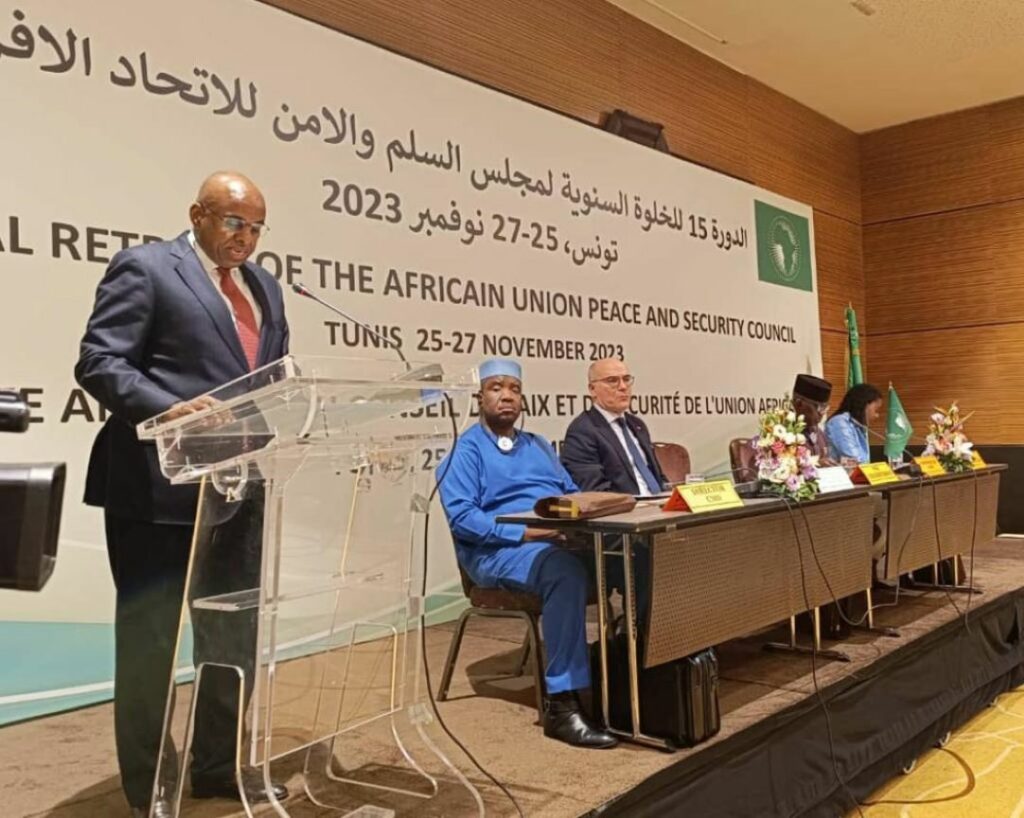 Arrivé le 18 novembre 2023, à l’Aéroport International de Tunis-Carthage,à la tête d’une forte délégation composée de membres et d’experts du CPSUA, l’Ambassadeur de la République de Djibouti et Président du Conseil pour le mois de novembre, Abdi Mahamoud Eybe, a démarré à Tunis, la 15èmeRetraite du Conseil de Paix et de Sécurité de l'Union Africaine qui a ouvert ses portes le samedi 25 novembre. Durant son discours d’ouverture, il exhorta l’assemblée « d’utiliser les résultats de cette retraite pour consolider l’unité africaine ». Par ailleurs, il affirma que « la coopération avec les nations Unies, l’union européenne et d’autres acteurs internationaux permettra une meilleure coordination des efforts et une réponse plus efficace face aux défis complexes auxquels nous sommes confrontés ». A Tunis, le Président du Conseil de paix et de Sécurité s’est dit « convaincu que le continent africain est capable de défendre ses intérêts stratégiques ainsi que ses priorités en matière de sécurité et qu’il a les moyens de mobiliser les capacités nécessaires pour mettre en œuvre et réussir ses plans de paix et ses programmes de développement économique et social ». Dans son intervention, le Ministre des Affaires étrangères, de la Migration et des Tunisiens à l'étranger, Monsieur Nabil Ammar, a souhaité au Conseil des délibérations fructueuses dans la quête de l'amélioration de ses méthodes de travail en faveur de la paix, de la sécurité et de la stabilité en Afrique.Quant au président de la Commission des Affaires Politique, de la Paix et de la Sécurité de l’Union Africaine, M Bankole Adeoye, il a souligné dans son discours d'ouverture, les objectifs stratégiques de la retraite du CPSUA et sur ses méthodes de travail. Il a indiqué que ce noble organisme évolue au milieu d'une myriade de menaces liées à l’insécurité en Afrique. Finissant par ces mots rassurants, il affirma l’entière disponibilité de la Commission qu’il présidepour aider le Conseil à s’acquitter efficacement de toutes ses missions.