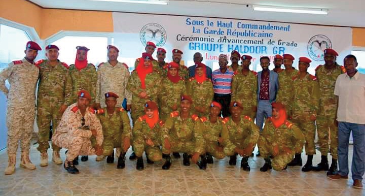 Le camp Omar Aline de la Garde Républicaine a abrité lundi 11 février dernier une cérémonie de remise de galon aux artistes de la troupe ‘‘Hal-Door’’ de ce corps. Parrainé par le chef d’état-major de la Garde Républicaine, le colonel Mohamed Djama Doualeh, l’événement riche en animations musicales et en couleurs a vu la participation de l’icône de la chanson djiboutienne Awaleh Aden Deheyeh, des doyens des artistes nationaux Aden Farah Samatar et Hamadou Dabaleh ainsi que d’un bon nombre d’officiers supérieurs de la GR.