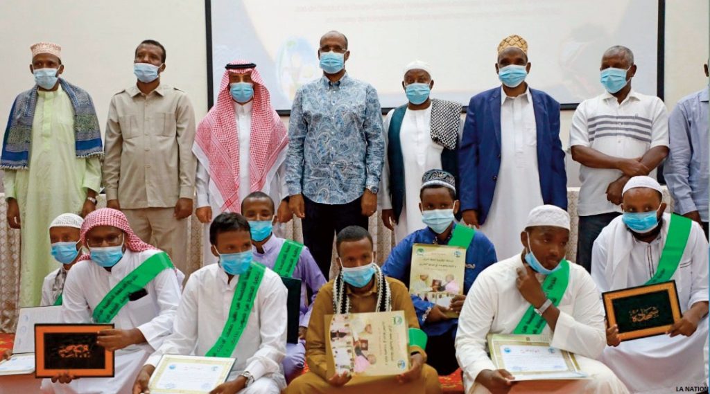 La salle de conférence du palais du peuple a abrité dans la matinée de lundi dernier, une cérémonie dédiée à la 5ème promotion de l’institut ‘‘Imamu Shaafi’i’’ de Djibouti. Organisé par le ministère des affaires musulmanes, de la culture et des Biens Waqfs, l’événement s’inscrit dans le cadre des activités visant à valoriser et à promouvoir l’apprentissage et la mémorisation du Saint Coran, entreprise par ce département ministériel de notre pays.