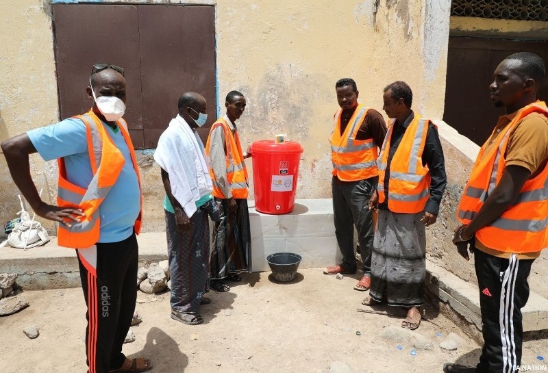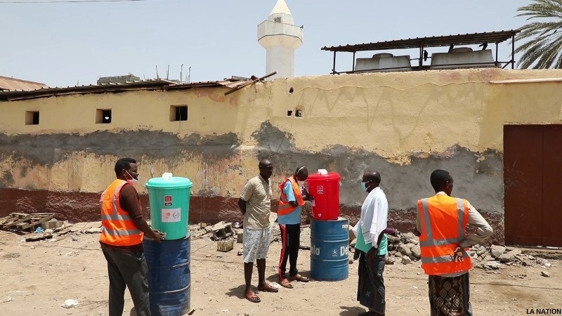 Faisant suite aux activités lancées par le secrétariat d’Etat à la jeunesse et aux sports dans le cadre du programme national établi par le gouvernement afin de lutter contre la propagation de la COVID19 dans notre pays, un comite mixte, constitué de jeunes leaders des quartiers et des agents de terrain du SEJS, a procédé à une opération de distribution de seaux d'eau servant au point de lavage des mains dans les différentes communes de la capitale.