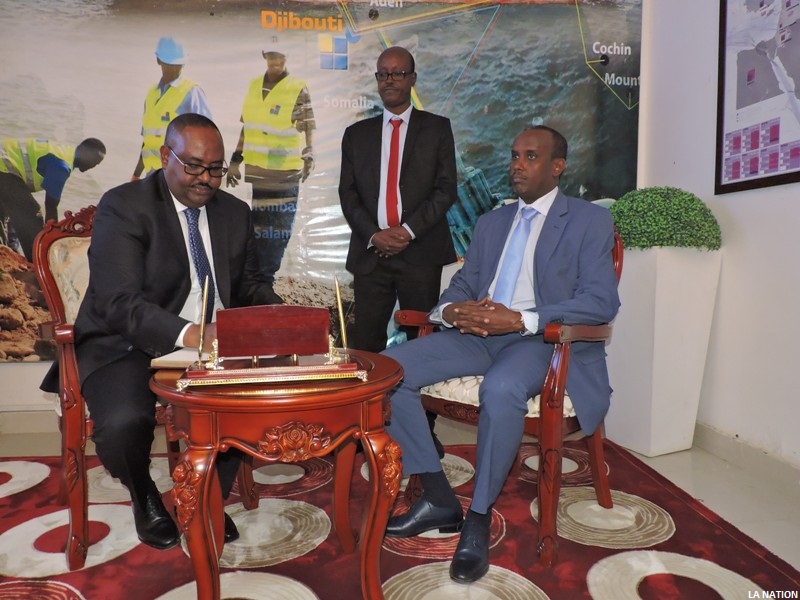 Dans le cadre de sa visite à Djibouti, le président de la région du Puntland en Somalie, Saïd Abdullahi Deni et les membres de sa délégation ont été reçu hier en mi-matinée, dans la station d’atterrissage des câbles sousmarins sise à Haramous, par le ministre de la Communication chargé des Postes et des Télécommunications, Radwan Abdillahi Bahdon. Sur place, les hôtes de marque, ont écouté d’une oreille attentive les explications sur les capacités de cette station de Djibouti Télécom qui a fait de notre pays un «hub» numérique régional des télécommunications en termes de connectivité régionale et internationale.